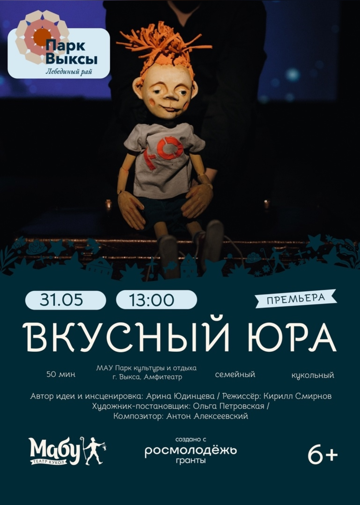 Проект «Серия кукольных семейных спектаклей «Вкусный Юра» реализуется при поддержке Росмолодежь.Гранты ( fadm.gov.ru/ )